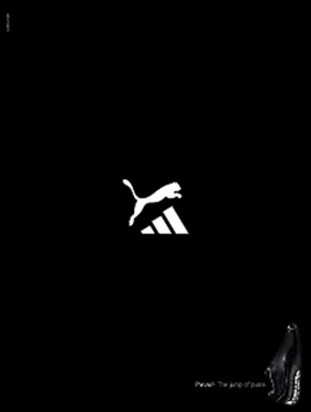Brendlərin apardığı ədavət bəzən çox kreativ ideyalara gətirib çıxarır. Qara fonda “Puma”nın “Adidas”ın üzərindən atlanmasını göstərməklə, “Puma”nın daha üstün olduğunu vurğulayıblar. Sağ küncdə isə krosovka əks olunub. Bu ideyanı cəmi iki sözlə - “Pumanın atlayışı” adlandırıblar.